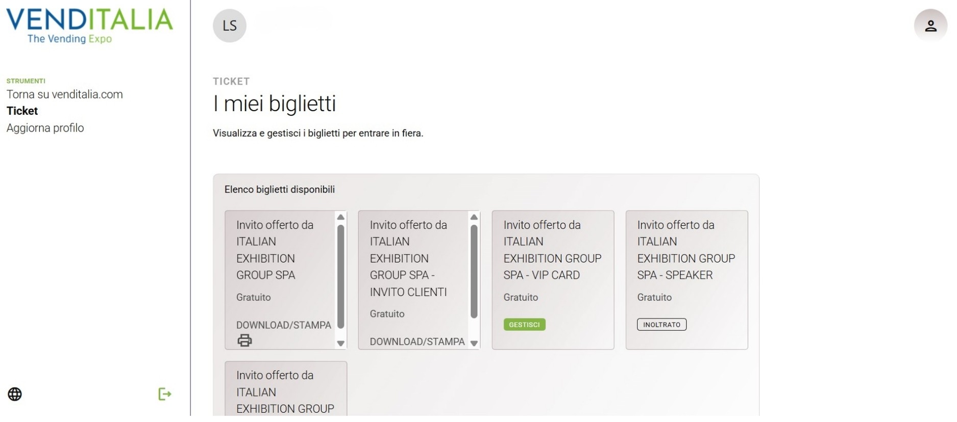 Nella sua area riservata il visitatore potrebbe avere anche altri biglietti, offerti da altre aziende. Se vuoi che entri con il tuo biglietto, dovrai segnalargli di fare attenzione a scaricare proprio quello! Ricordati che è contrassegnato da “Biglietto offerto da + tua ragione sociale”.